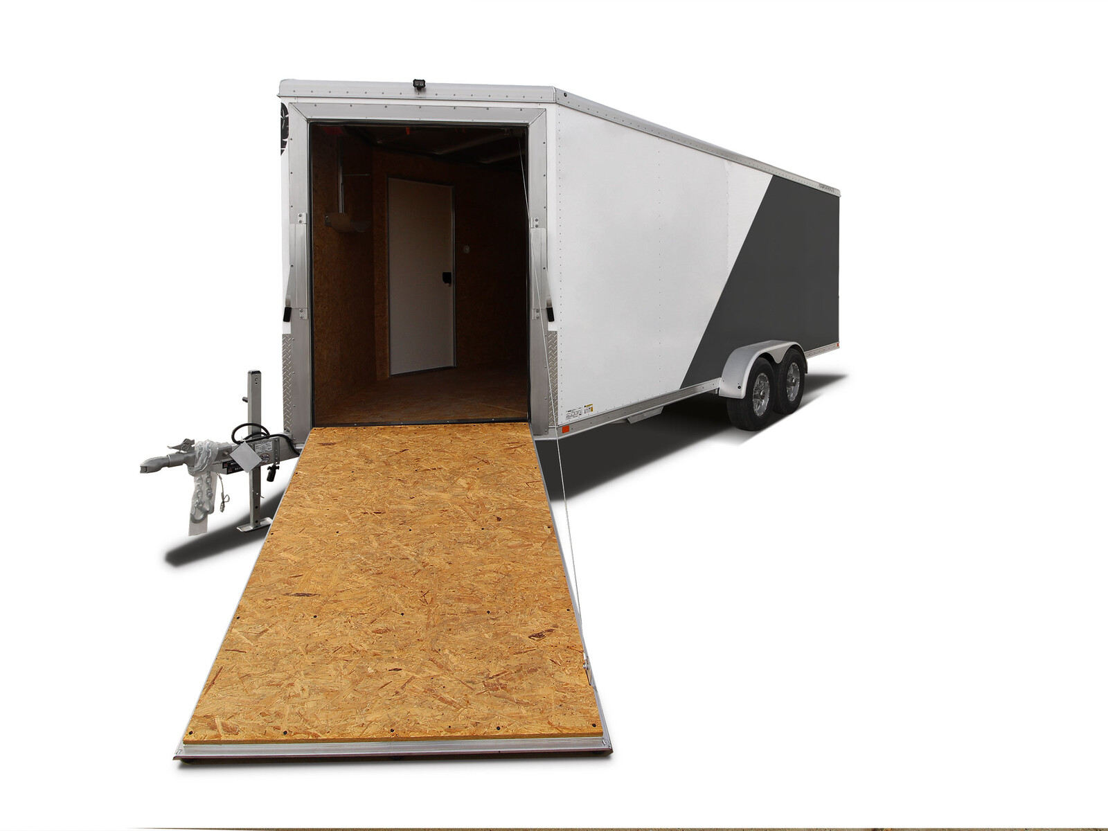 Featherlite’s 1610V is the trailer for ATVs! A wide 50” front ramp in the v-nose allows for easy unloading of your ATVs, and a rear ramp provides equally easy loading when you’re ready to head home. Available in lengths from 12′ to 24′, the 1610V offers several options that let you configure it to your specifications. A smooth extruded aluminum floor, surface mount tie downs and overhead cabinets turn your trailer into a mobile garage while you’re out in the field.