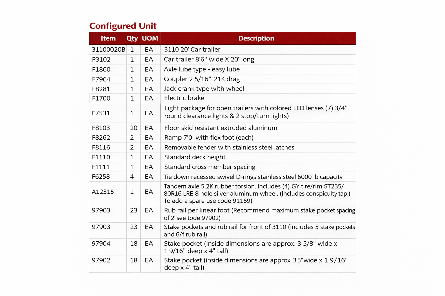 Show off your vehicle with the Featherlite bumper pull car trailer Model 3110! This open car trailer offers a platform to dynamically display your automobile and offers several standard safety features to give you peace of mind during travel. Four stainless steel swivel D ring tie downs and a skid-resistant aluminum floor come standard, as do removable fenders. Turn some heads with your car on a 3110 Featherlite bumper pull car hauler.